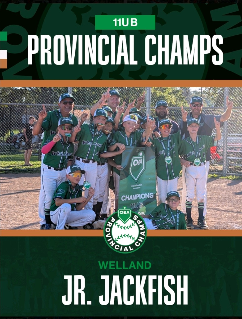 Congratulations to our 11U Welland Junior Jackfish on bringing home the 1st OBA Championship Welland Junior Jackfish era!